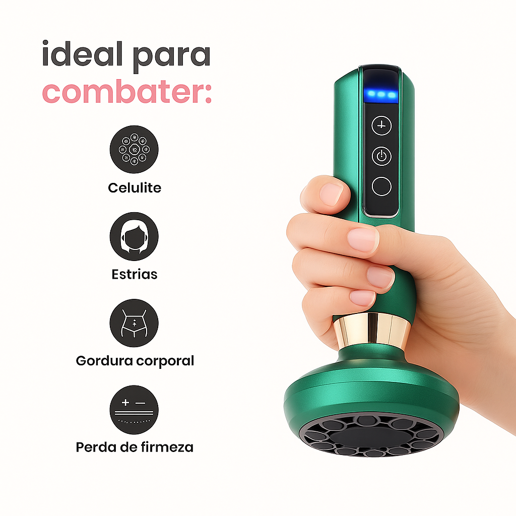 O massajador anticelulítico NAYRAS™ utiliza tecnologias avançadas de massagem, como a terapia de sucção e o calor infravermelho, para reduzir a aparência da celulite, das estrias e de outros sinais de envelhecimento.